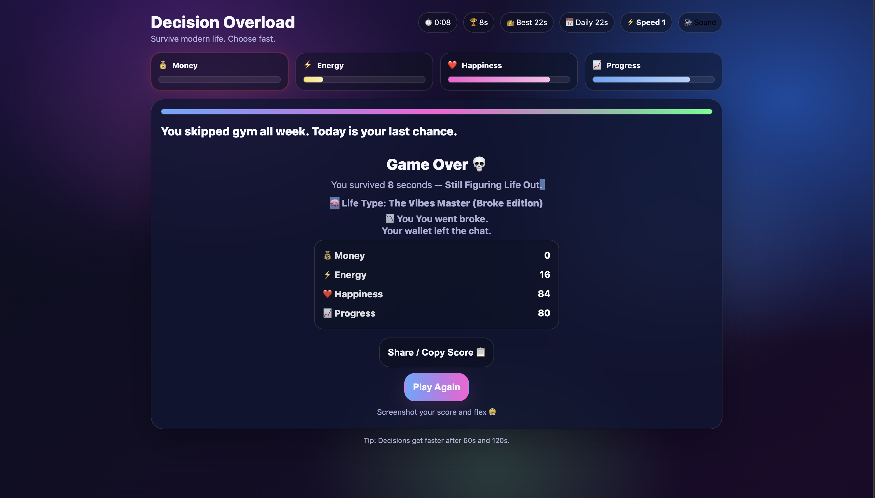 | Tags | Casual, decision, Fast-Paced, life-simulator, Meaningful Choices, reaction, storygame |